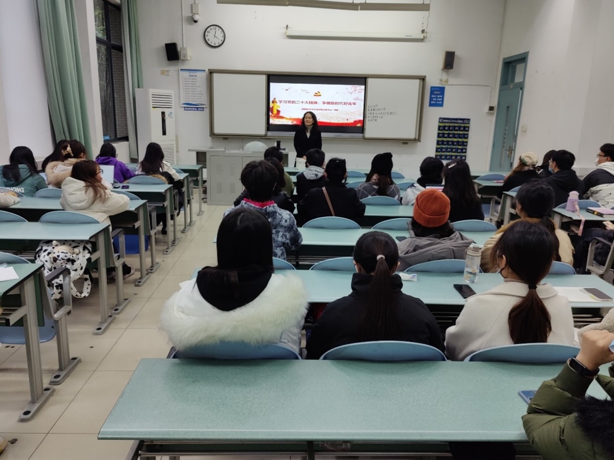 12月6日下午,学院书记周敏、院长鲁万波在经世楼C101和C201为学院学生党员、学生干部讲思政课,宣讲党的二十大精神。