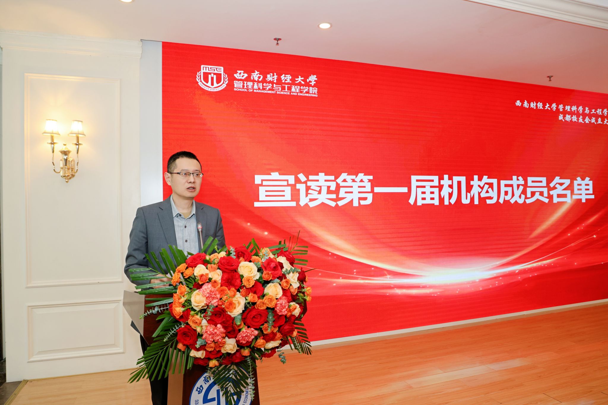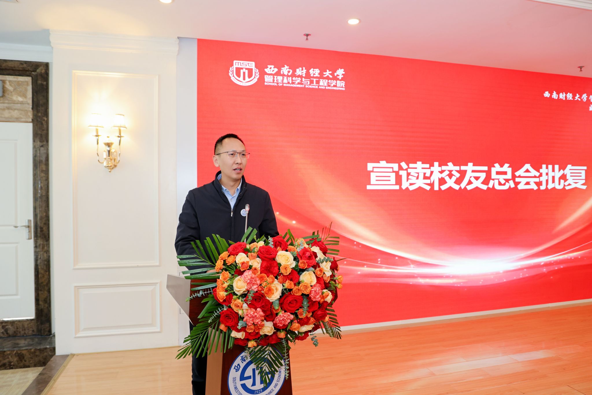 学校校友总会办公室主任张元宣读校友总会批复,向管科学院成都校友会的成立致以热烈祝贺。