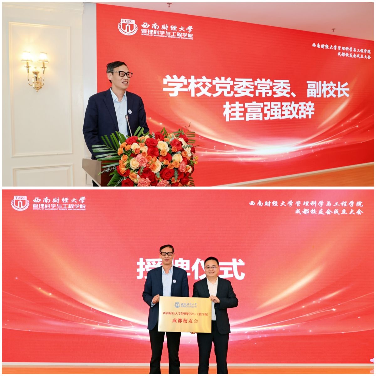 成都校友会成立大会在光华校区成功举办。学校党委常委、副校长桂富强,校友工作办公室、成人网