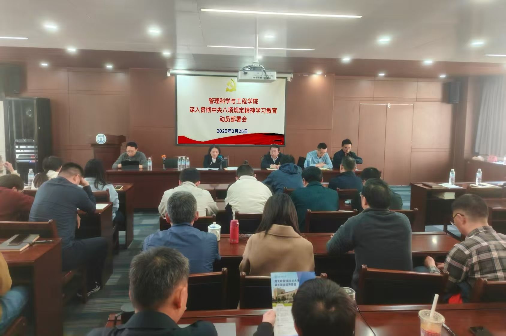 会议指出,开展深入贯彻中央八项规定精神学习教育是贯彻落实党的二十届三中全会部署,巩固拓展学习贯彻习近平新时代中国特色社会主义思想主题教育成果,巩固深化党纪学习教育成果,推进作风建设常态化长效化的关键举措,也是今年党建工作的重点任务。学院领导干部要带头遵守、带头执行,以身作则、率先垂范;各师生党支部要认真学习中央八项规定及其实施细则精神,切实把思想和行动统一到党中央决策部署上来,高标准高质量开展好学习教育。