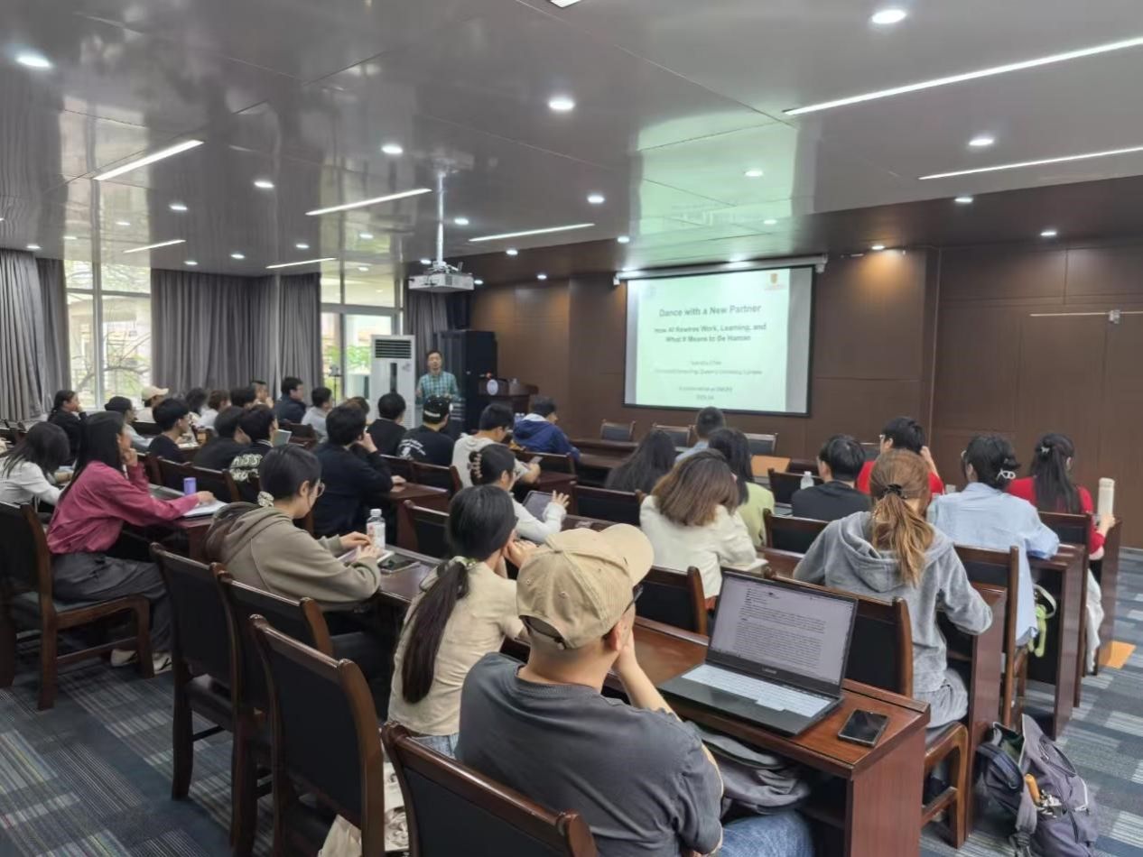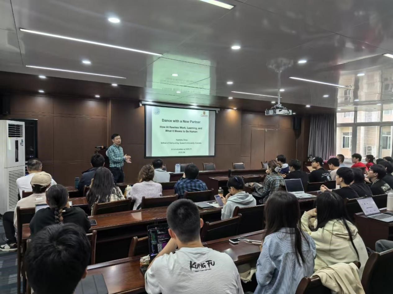 邀请加拿大女王大学计算机学院陈远筑教授作题为《Dance with a new partner:How AI Rewires Work,Learning,and What It Means to Be Human:与新舞伴共舞:人工智能如何重新连接工作、学习以及作为人类意味着什么?》的专题讲座,学院计算金融系主任王俊教授主持。
