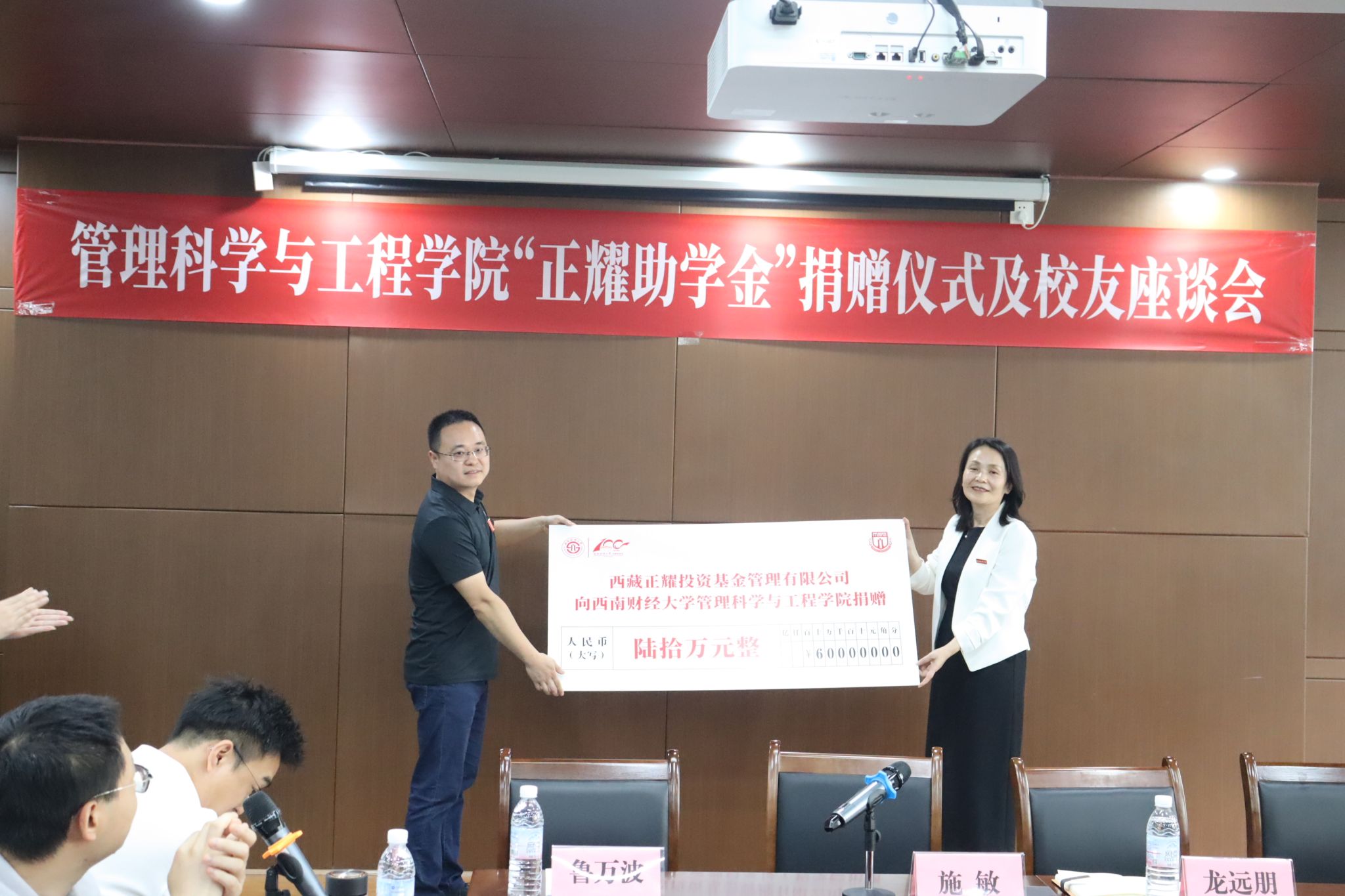 6月1日下午,"正耀助学金"捐赠仪式暨校友座谈会在通博楼D301会议室隆重举行。学院党委副书记袁程炜主持活动。