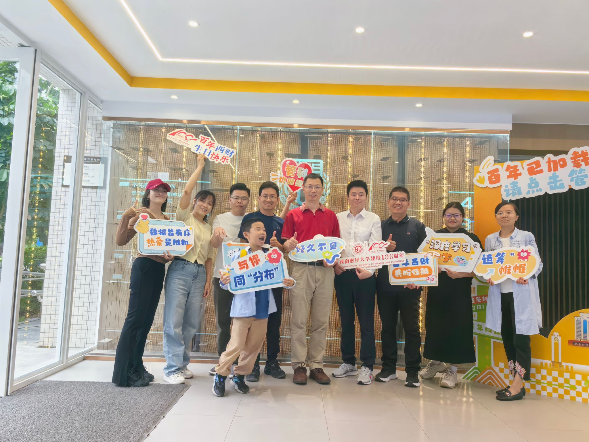 5月31日,来自全国各地的管科校友怀揣赤子之心重返母校。学院在济民广场和通博楼D座设置温馨的集中报到点和打卡拍照点,精心设计的"百年已加载,请点击管科"主题打卡立牌与校园内飘扬的彩旗、醒目的横幅相映成趣,营造出浓厚的校庆氛围。校友们手持管科专属手牌,在展板前驻足留影,灿烂的笑容定格了重逢的喜悦。