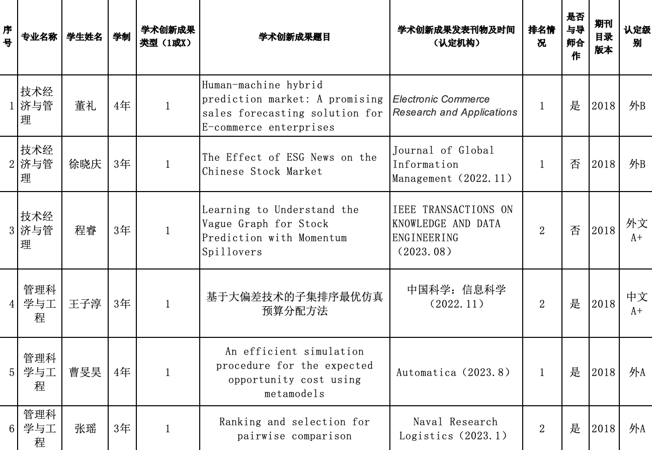 根据《成人网 博士生申请学位学术创新成果认定办法》和成人网 相应专业的博士生培养方案要求及科研成果发表的相关规定,学院对相关博士生的学术创新成果及科研情况进行了审核,现将结果予以公示。公示期自2023年9月8日至9月28日(十五个工作日),在此期间若有异议,请及时反馈学院。