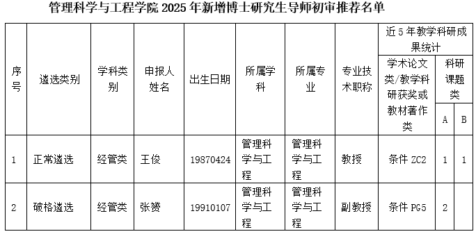 根据《成人网 研究生导师岗位管理办法(试行)》(西财大办〔2023〕19号)要求,经教师本人申请,学院工作人员初审,党政联席会议审查,成人网 学位评定分委会审核,现将本单位初审推荐的2025年新增博士研究生导师名单公示如下(见附件),公示期为2025年10月28日至2025年11月3日。如对公示结果有异议,可在公示期内反馈,联系人:陈老师,联系邮箱:[email protected]。