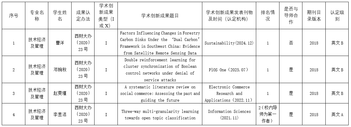 根据《成人网 博士生申请学位学术创新成果认定办法》和成人网 相应专业的博士生培养方案要求及科研成果发表的相关规定,学院对相关博士生的学术创新成果及科研情况进行了审核,现将结果予以公示。公示期自2025年11月4日至11月24日(十五个工作日),在此期间若有异议,请及时反馈学院。